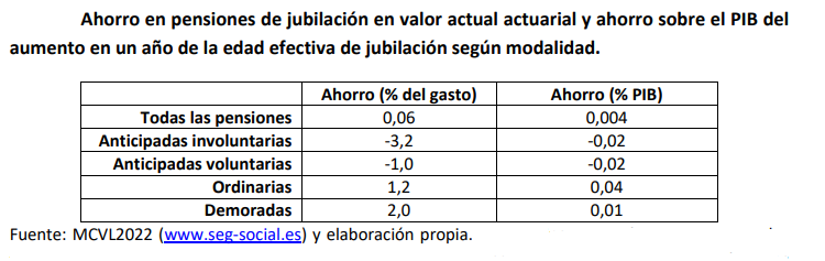El resultado mencionado anteriormente es en valor actual actuarial, entendido como el ahorro acumulado en 2022 de todos los ahorros que se generarían a lo largo de toda la vida de los jubilados que se dieron de alta en 2022, bajo el supuesto de que todos ellos hubieran diferido un año la edad de jubilación.