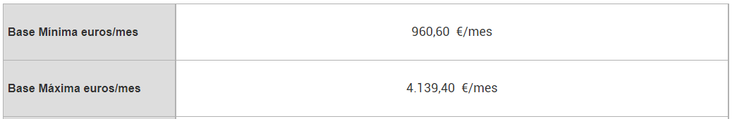 Régimen de autónomos: bases mínima y máxima, y tipos de cotización aplicables