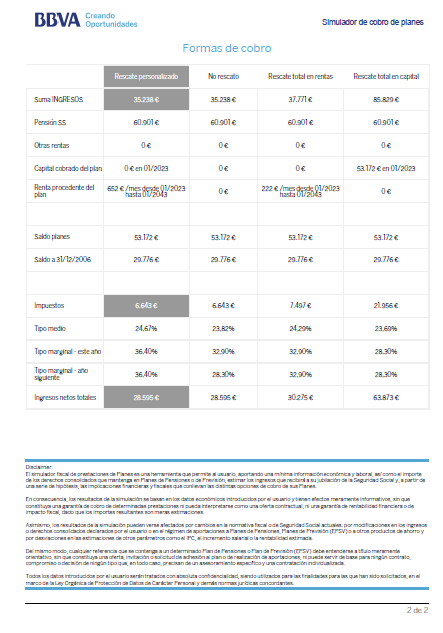 Otra novedad que se ha incorporado es explicitar el tipo medio de gravamen, el tipo marginal el año de la jubilación y el siguiente para todas las formas de cobro.